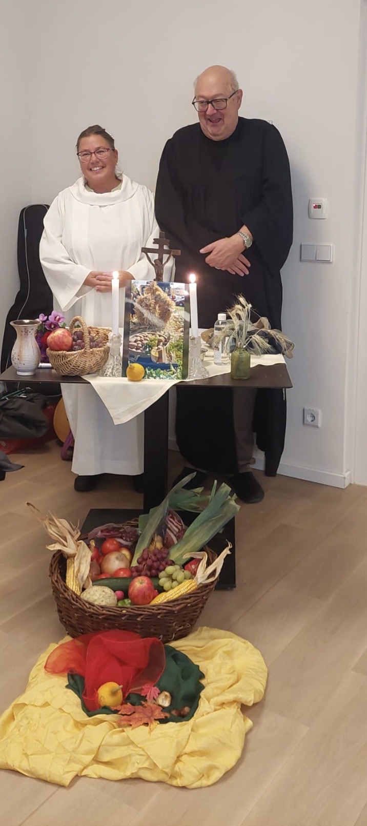 Altenheimseelsorgerin Sabine Kämmerer und Lektor Peter Pretner beim Erntedankfest