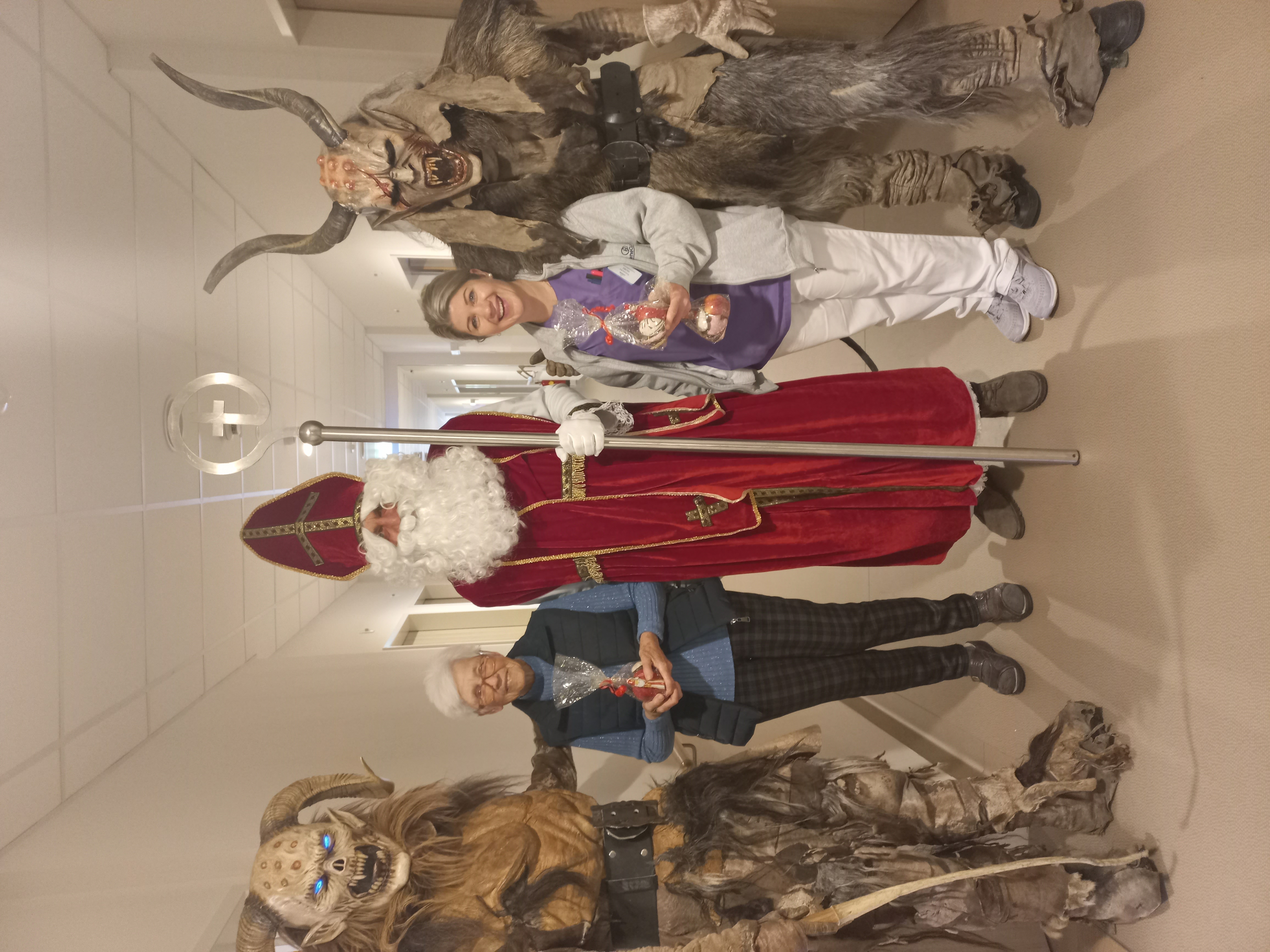 Der Nikolaus besuchte auch heuer wieder die Bewohner:innen des SeneCura Pflegezentrums Vassach. Mit seinen gruseligen Begleitern verteilte der Nikolaus kleine Nikolaussäckchen voller süßer Köstlichkeiten an die Bewohner:innen und Mitarbeiter:innen des Hauses. Neben Äpfeln, Nüssen und Lebkuchen gehörte natürlich auch Schokolade in den Nikolaussack. „Die Adventzeit ist eine Zeit voller Traditionen der Freude und Besinnung, die wir gemeinsam erleben.“, so Hausleitung Bettina Kreuzer.