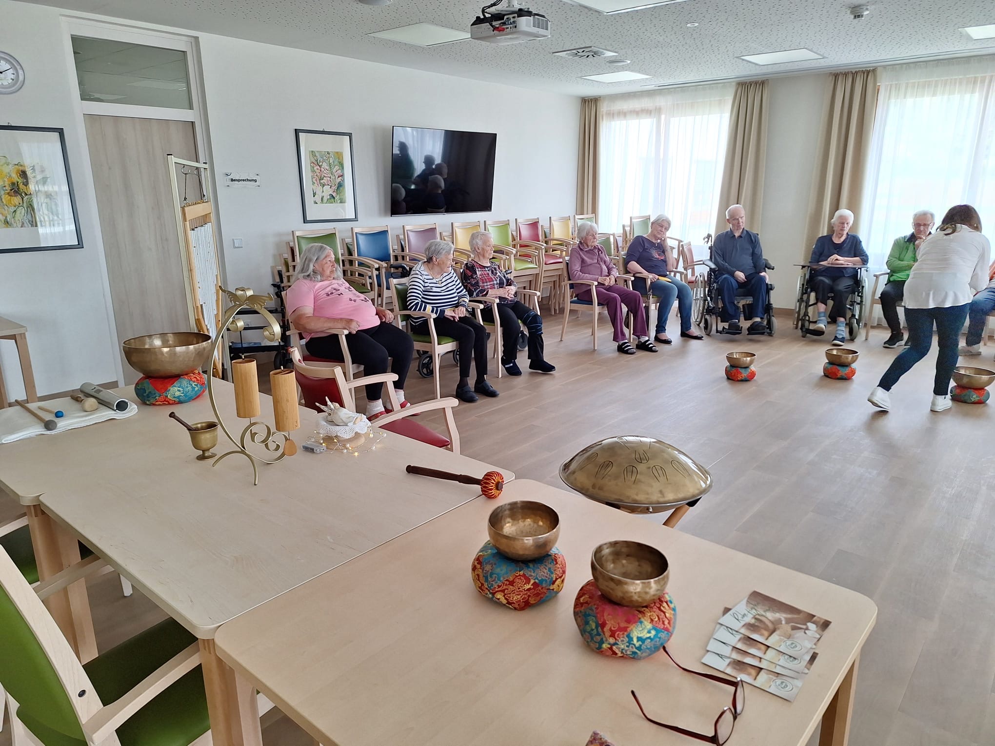 „Entspannt in den Vormittag mit Klangschale“ hieß es am Mittwoch, den 16.04.2025 im SeneCura Pflegezentrum Vassach. Bewohner:innen und Angehörige genossen die Klangschalenreise mit Gabriele Schumi.