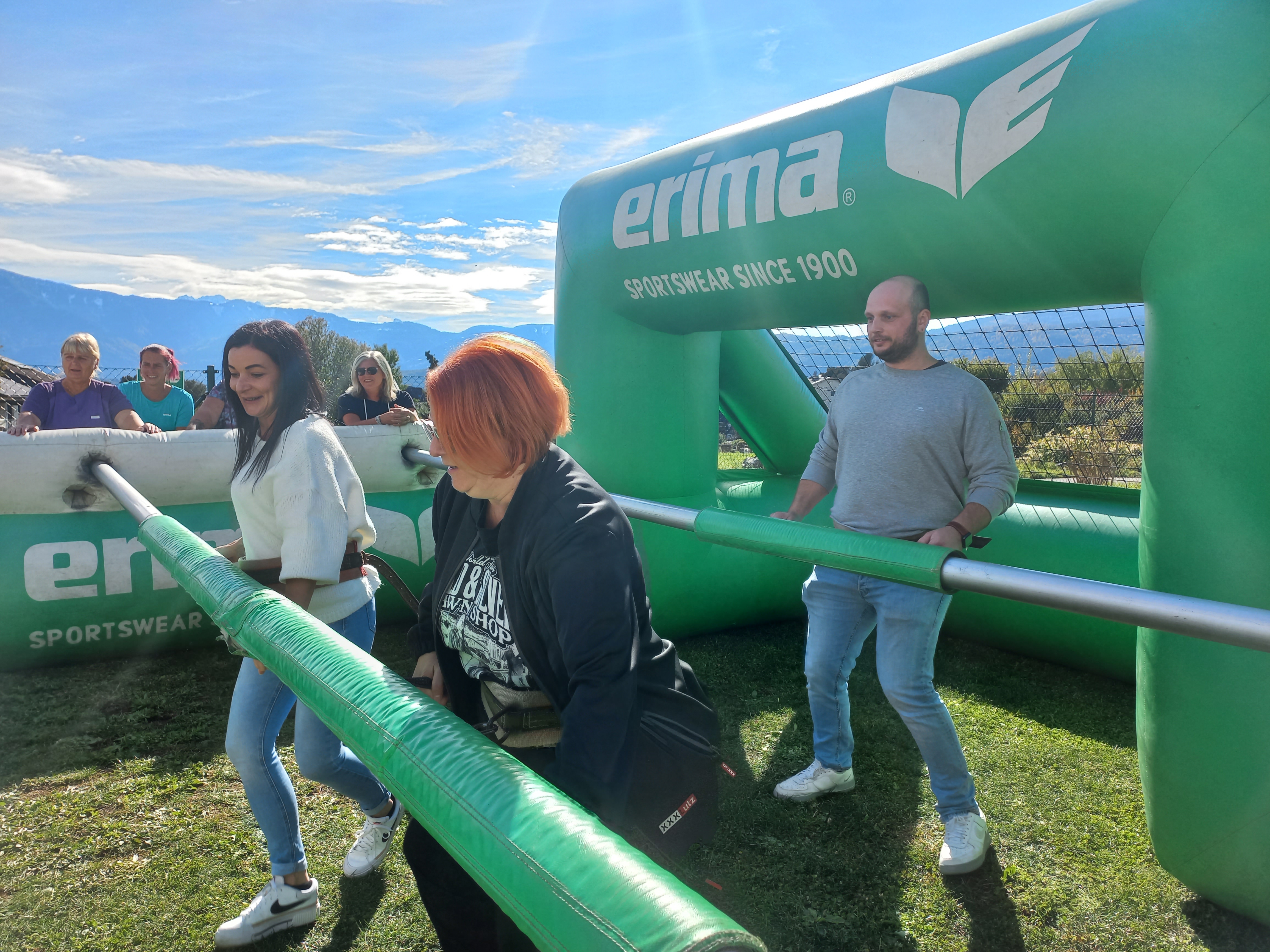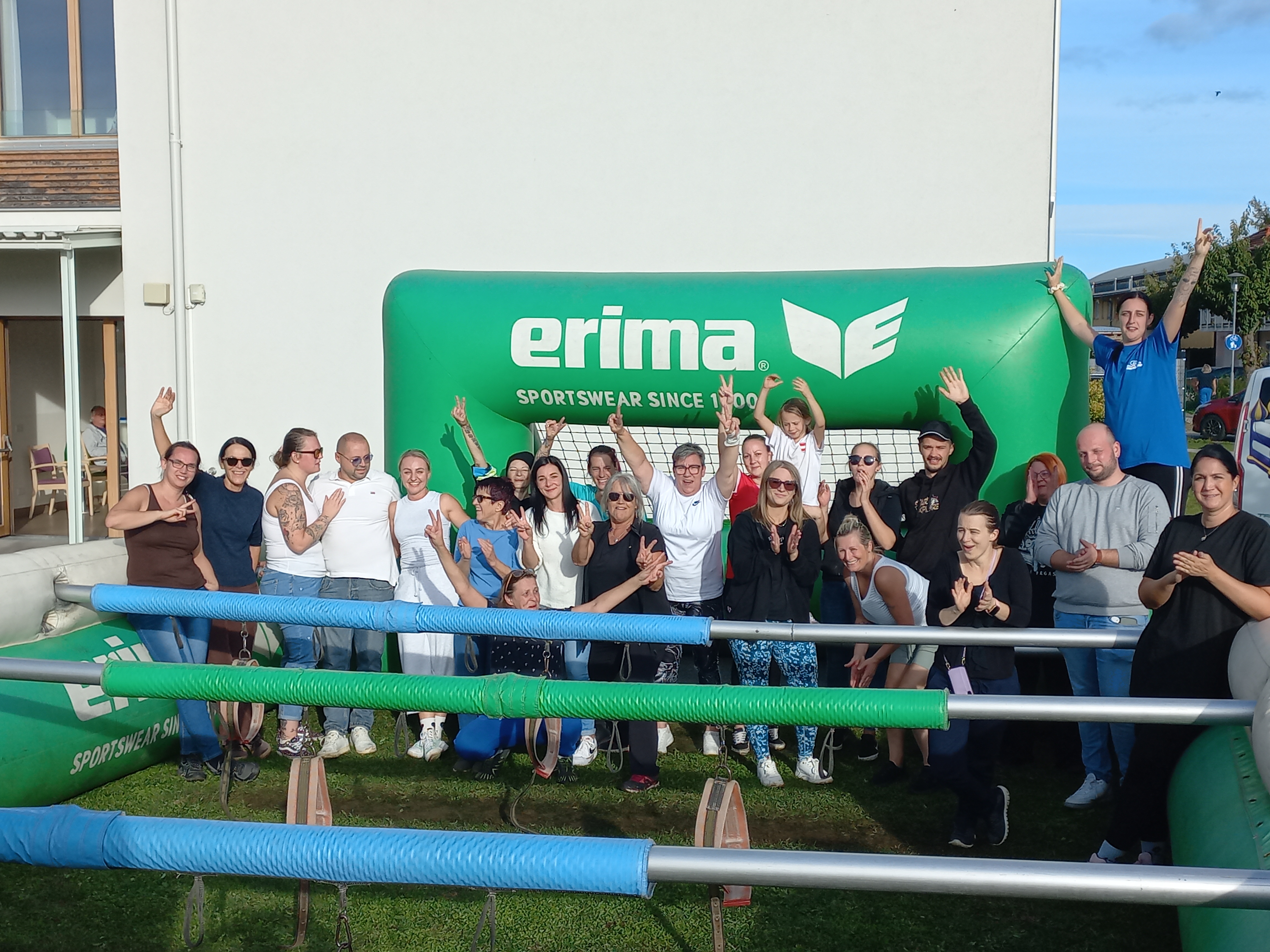 Kürzlich fand im SeneCura Pflegezentrum Vassach ein tolles Mitarbeiterfest statt. Als Highlight der Veranstaltung wurde im Garten des Pflegezentrums ein Riesenwuzzler aufgestellt. 5 Gruppen zu jeweils 5 Spieler:innen nahmen an dem Riesenwuzzlerfußballturnier teil. Für die ersten 3 Gruppen gab es dabei tolle Preise und Medaillen zu gewinnen. Neben der spaßigen Aktivität wurden die Mitarbeiter:innen und Zuseher:innen mit köstlichen Gegrilltem und gut gekühlten Getränken gestärkt.