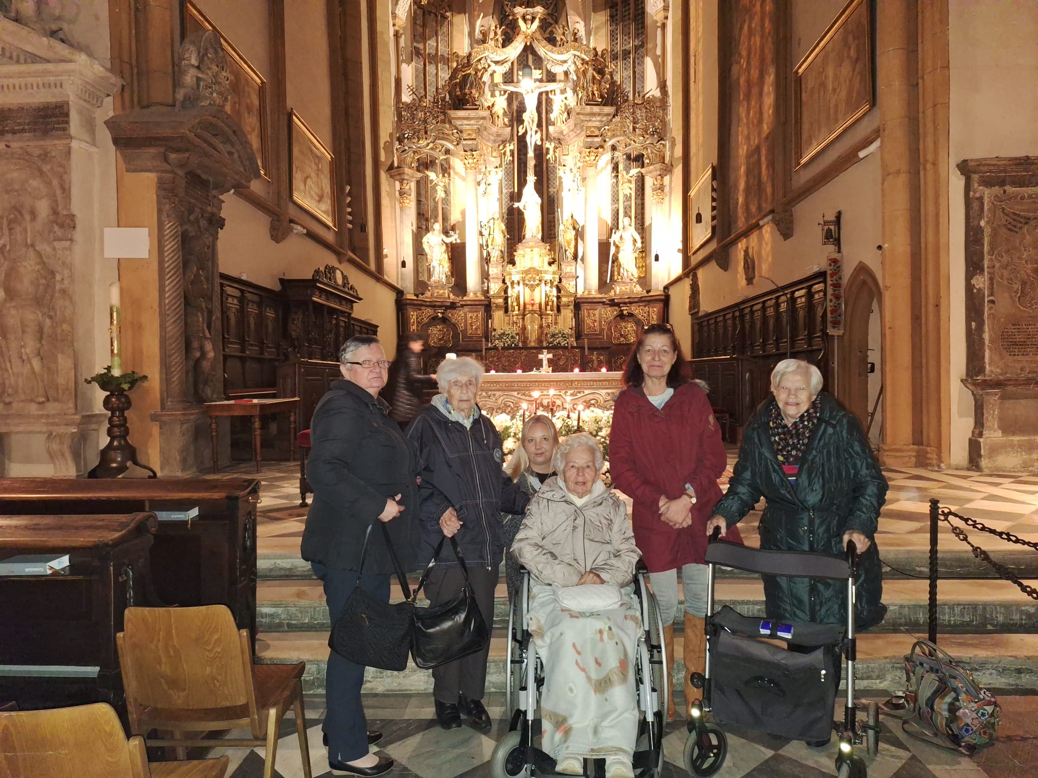 Das SeneCura Vassach besuchte kürzlich einen ganz besonderen Gedenkgottesdienst. Seniorenbetreuung Doris Hoi, PA Sabrina Baldauf und PA Magdalena Zwatz begleiteten die Bewohnerinnen Josefine Sitter, Irma Reichmann, Elisabeth Berger und Hemma Werni zum Gedenkgottesdienst in der Stadthauptpfarrkirche St. Jakob.