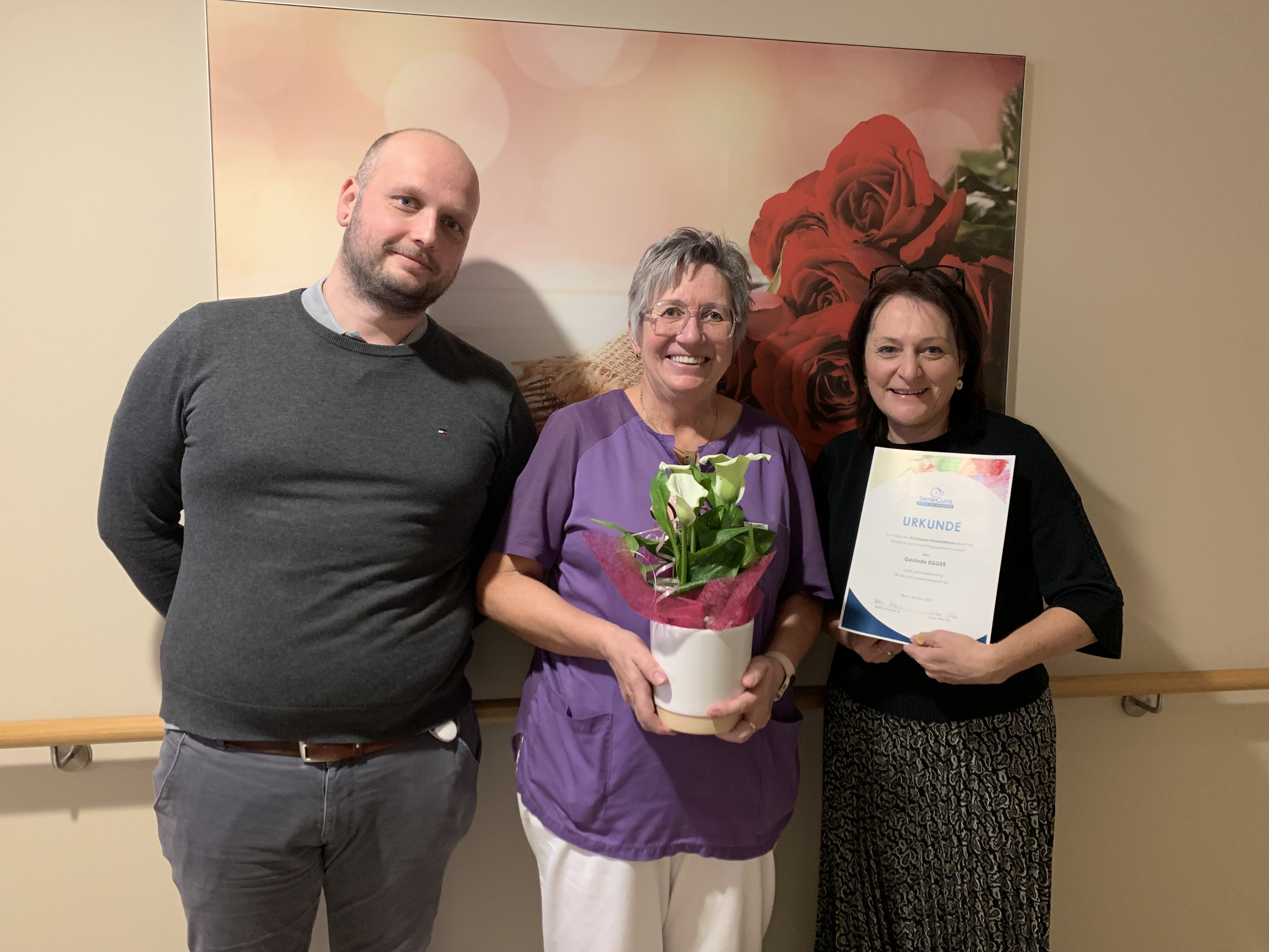 Grund zur Freude im SeneCura Pflegezentrum Vassach. Gerlinde Egger, Mitarbeiterin in der Wäscherei und Reinigung feierte ihr 30-jähriges Dienstjubiläum. Zu diesem Anlass gratulierte ihr das ganze Team sehr herzlich und sie wurde mit einem kleinen Geschenk von Hausleitung Bettina Kreuzer und Pflegedienstleiter Lukas Pirker überrascht. Im Herbst beginnt der wohlverdiente Ruhestand.