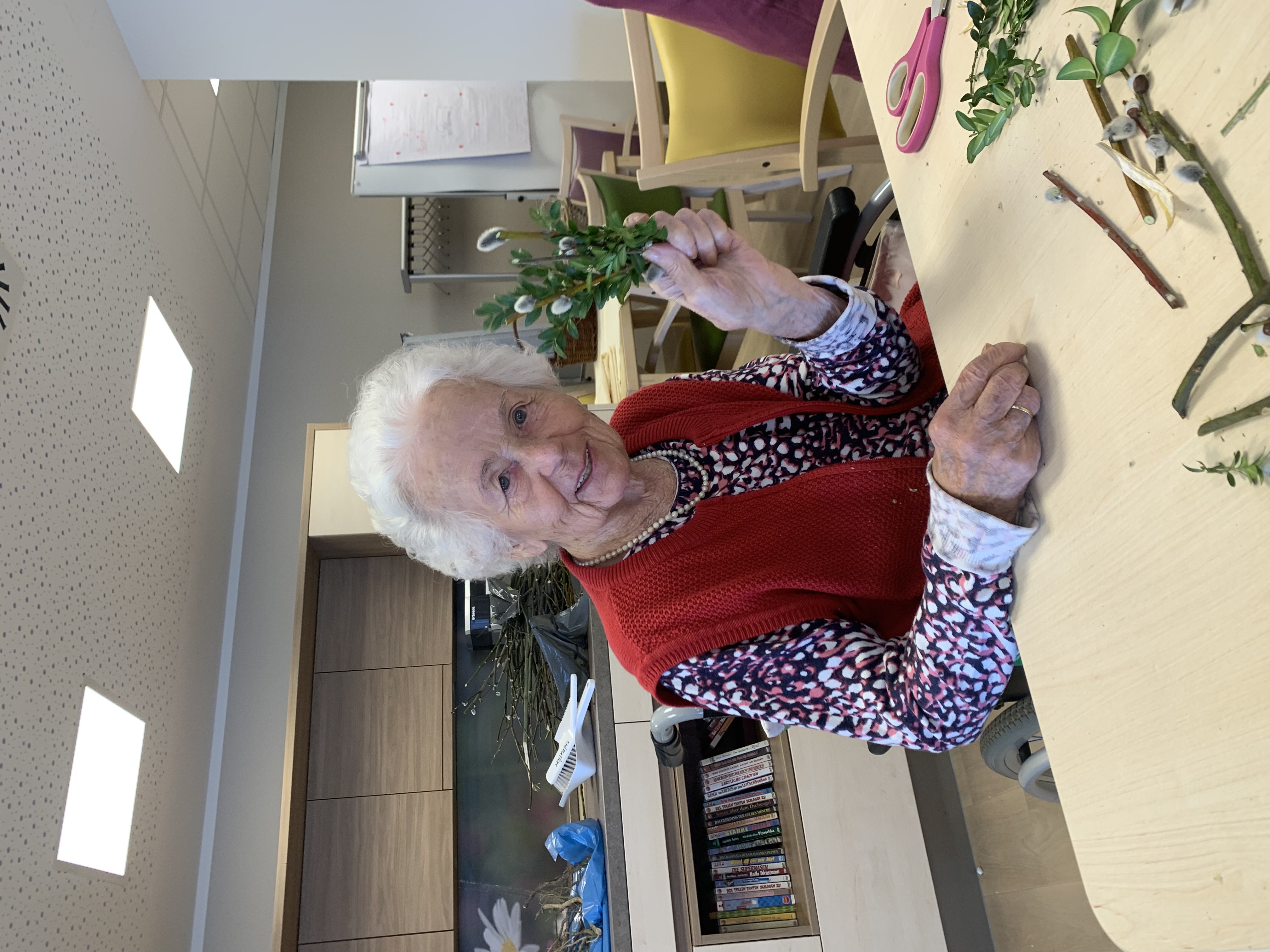 Im SeneCura Pflegezentrum Vassach laufen die Vorbereitungen für die Osterfeiertage. Die Bewohner:innen trafen sich, um gemeinsam mit der ehrenamtlichen Mitarbeiterin Emma Bürger um Palmbuschen zu binden. Ein traditioneller Brauch vor Ostern, bei dem immergrüne Zweige (wie Buchsbaum, Wacholder, Palmkätzchen) gebunden und beim Palmgottesdienst im Haus geweiht werden. Die Arbeit mit Naturmaterialien, die Gerüche und das Fühlen spielen dabei eine wichtige Rolle. Auch der Austausch der Erinnerungen an die Traditionen rund um das Osterfest kam nicht zu kurz und bereitete allen eine große Freude.